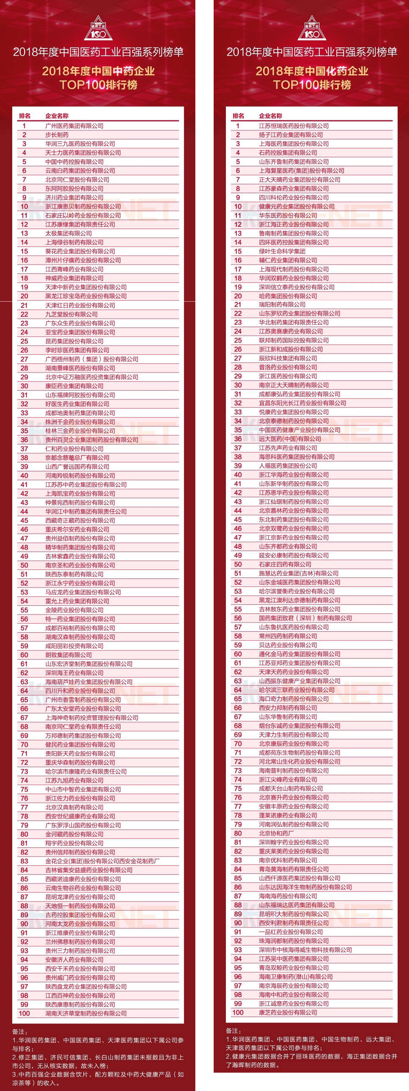 1.“2018年度中國醫(yī)藥工業(yè)百強系列榜單”評選時間跨度為2018年1月1日-12月31日;