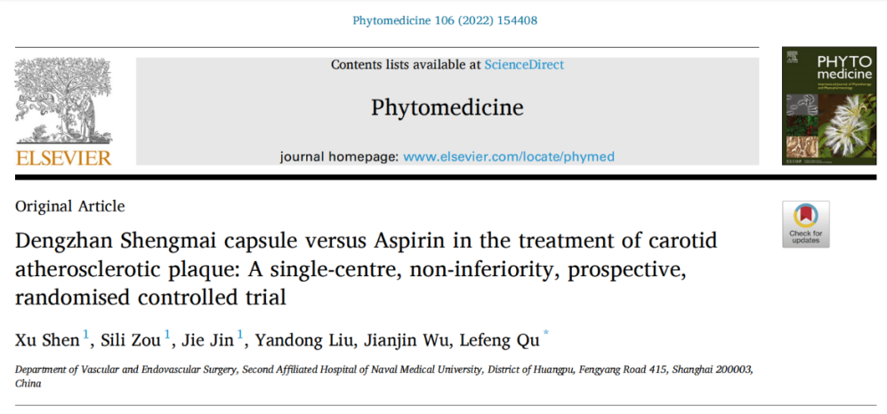 我公司產(chǎn)品燈盞生脈膠囊(以下縮寫(xiě)為DZSM膠囊)在防治頸動(dòng)脈粥樣硬化臨床應(yīng)用中已表現(xiàn)出良好的綜合療效,有可能與阿司匹林相似或更有效。為此,海軍軍醫(yī)大學(xué)上海長(zhǎng)征醫(yī)院血管外科的曲樂(lè)豐教授團(tuán)隊(duì)開(kāi)展了一項(xiàng)基于早期頸動(dòng)脈斑塊患者人群的隨機(jī)對(duì)照研究,主要目的是驗(yàn)證DZSM膠囊治療頸動(dòng)脈粥樣硬化斑塊與阿司匹林相比的非劣效性,研究結(jié)果近期已發(fā)表在國(guó)際著名期刊《Phytomedicine》上。